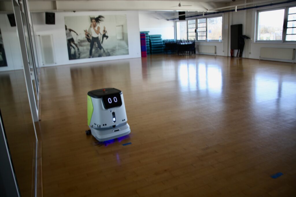 Der Roboter übernimmt monotone und zeitintensive Routinearbeiten wie die tägliche Bodenreinigung der Kursräume.